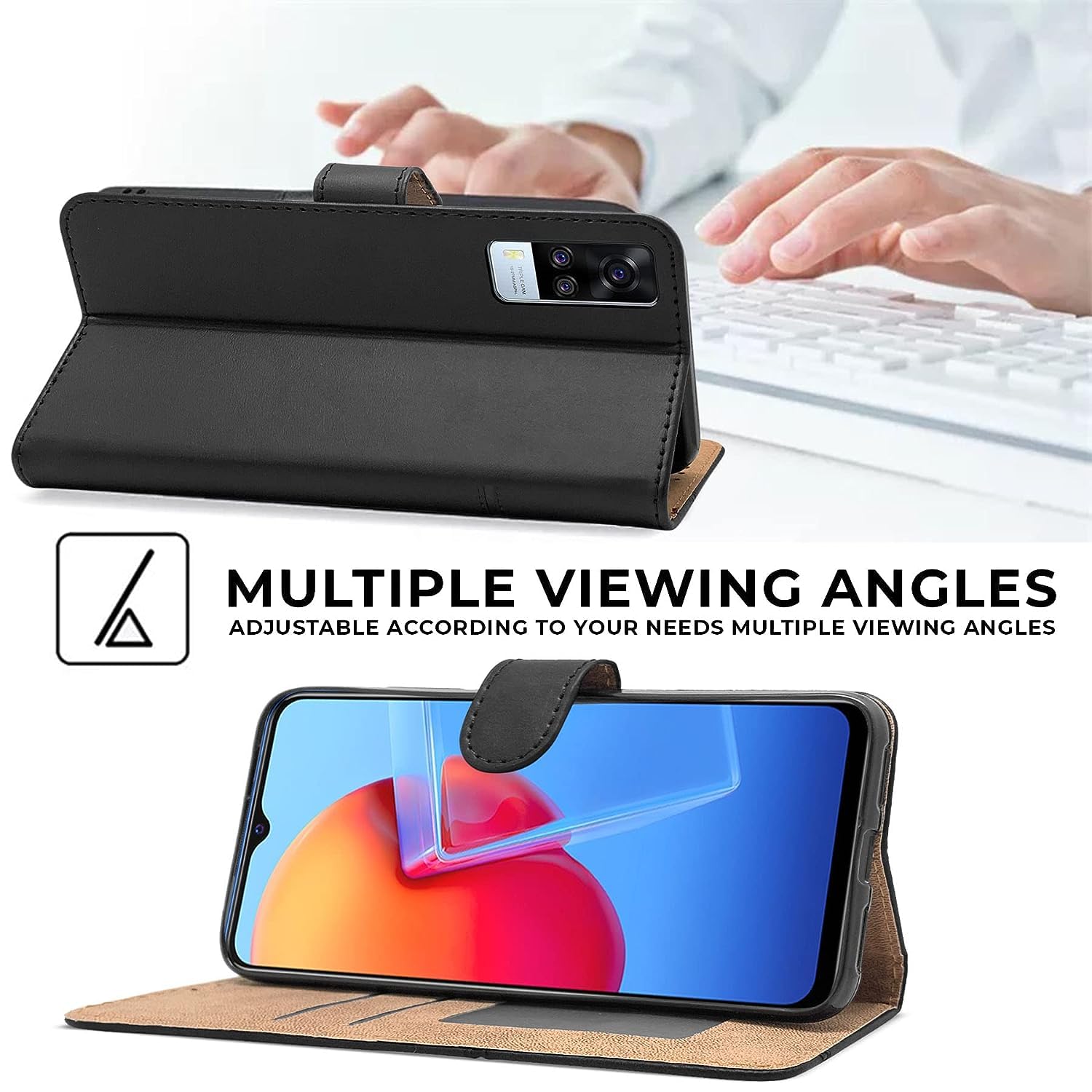 For Vivo Y51 (2020) Flip Cover Case (Stitched Leather with Magnetic Closure)