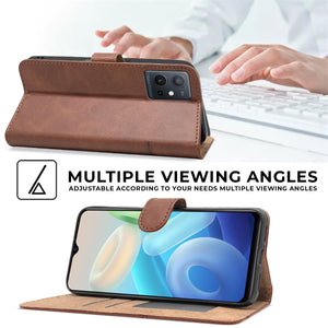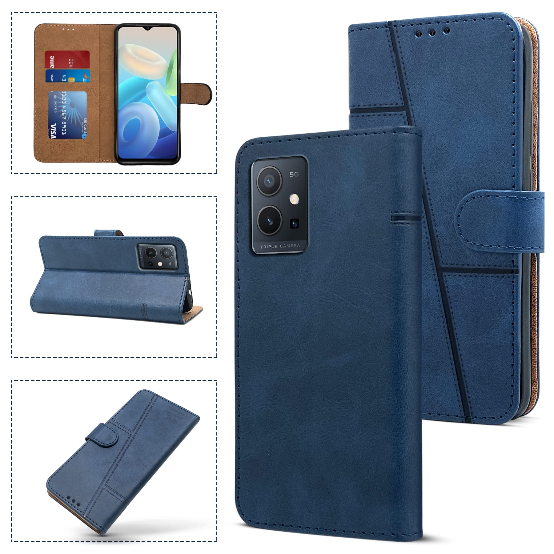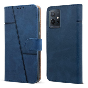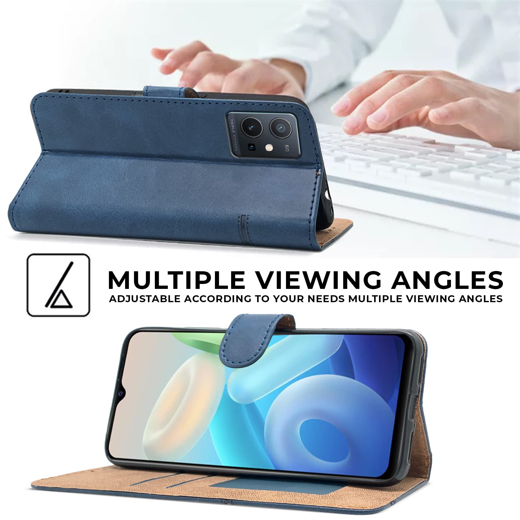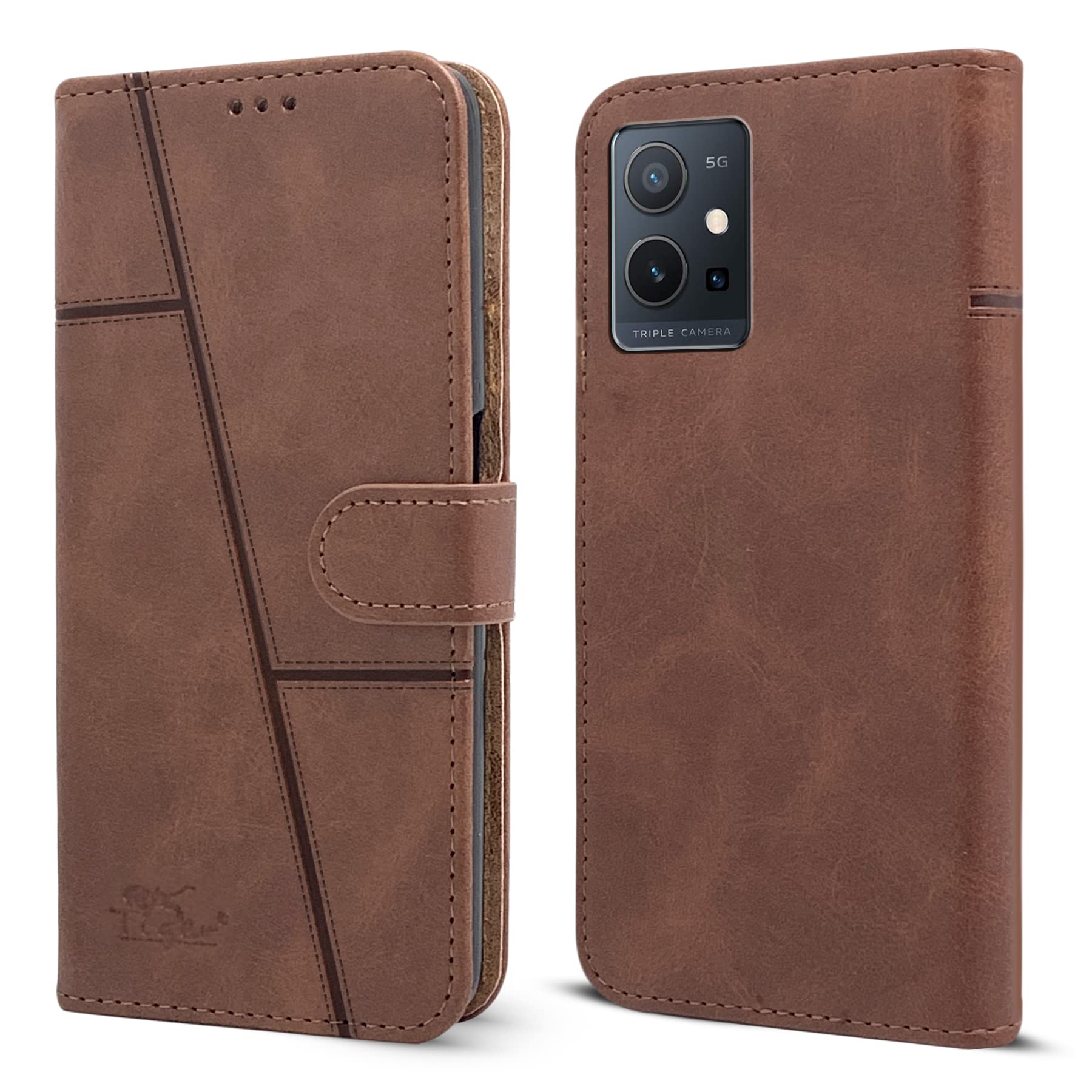 For Vivo Y75 5G | Y55 5G Flip Cover Case (Stitched Leather Finish | Magnetic Closure | Inner TPU | Foldable Stand | Wallet Card Slots)