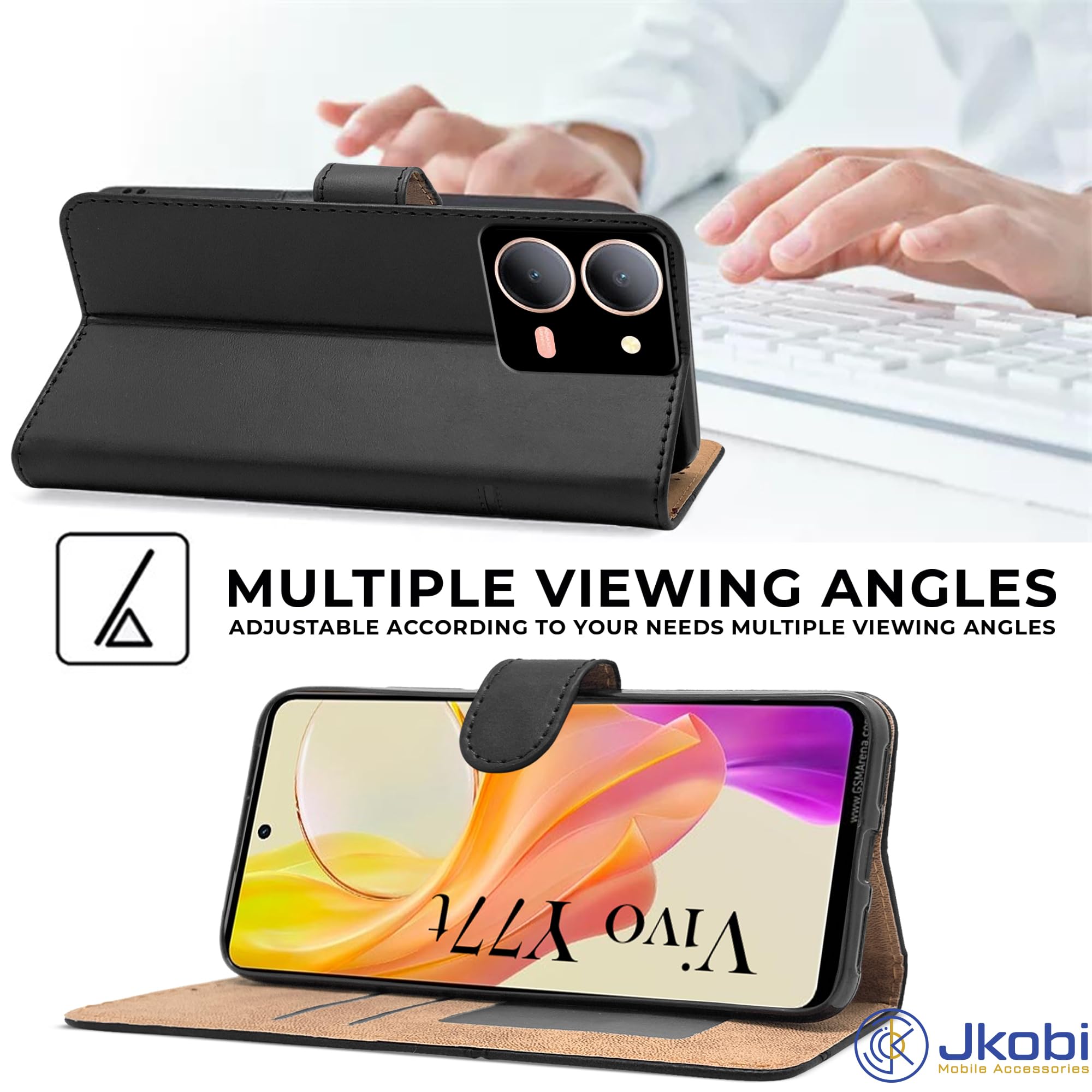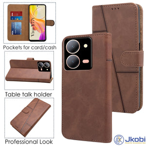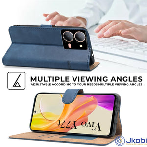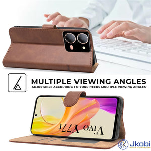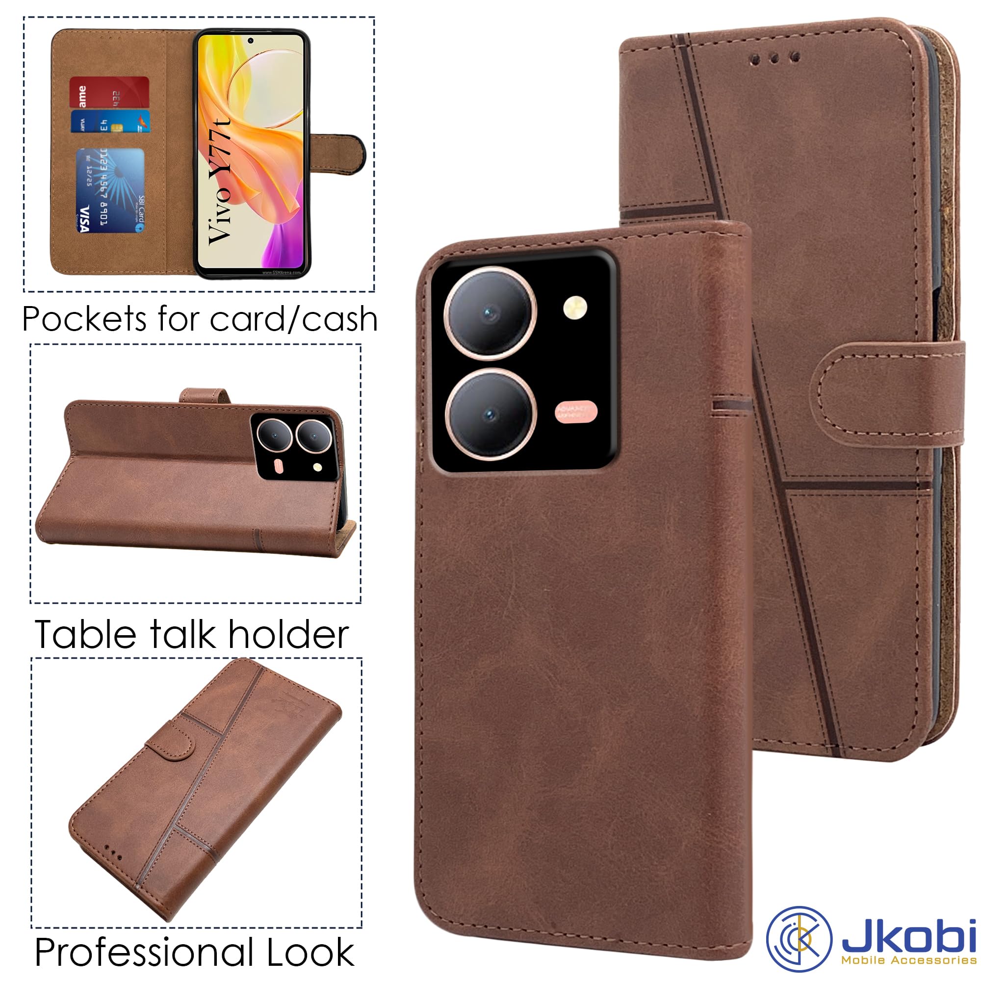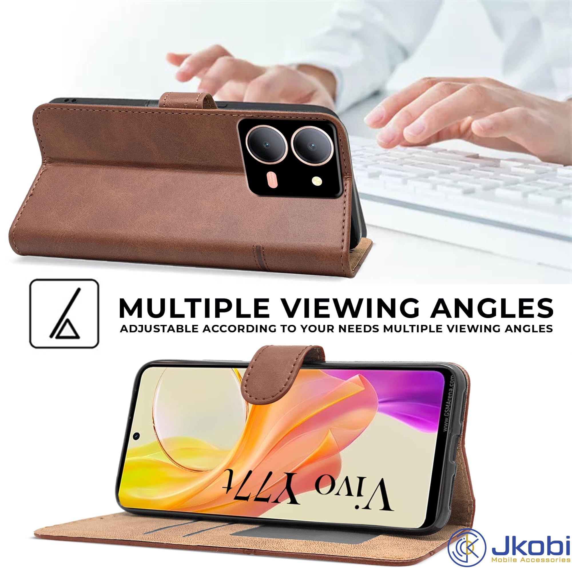 For Vivo Y77T Flip Cover Case (Stitched Leather with Magnetic Closure)