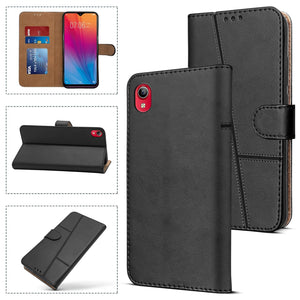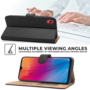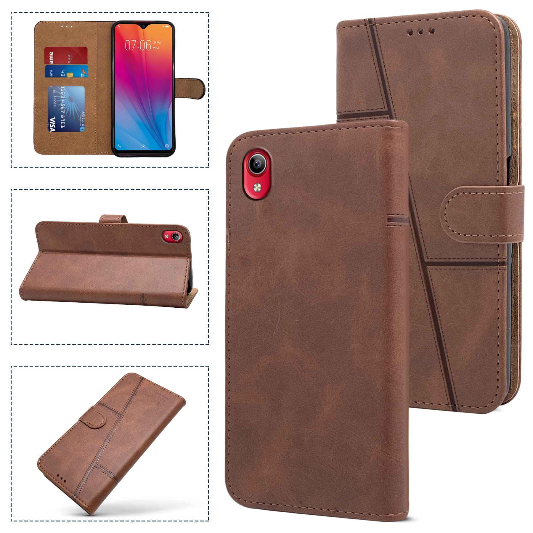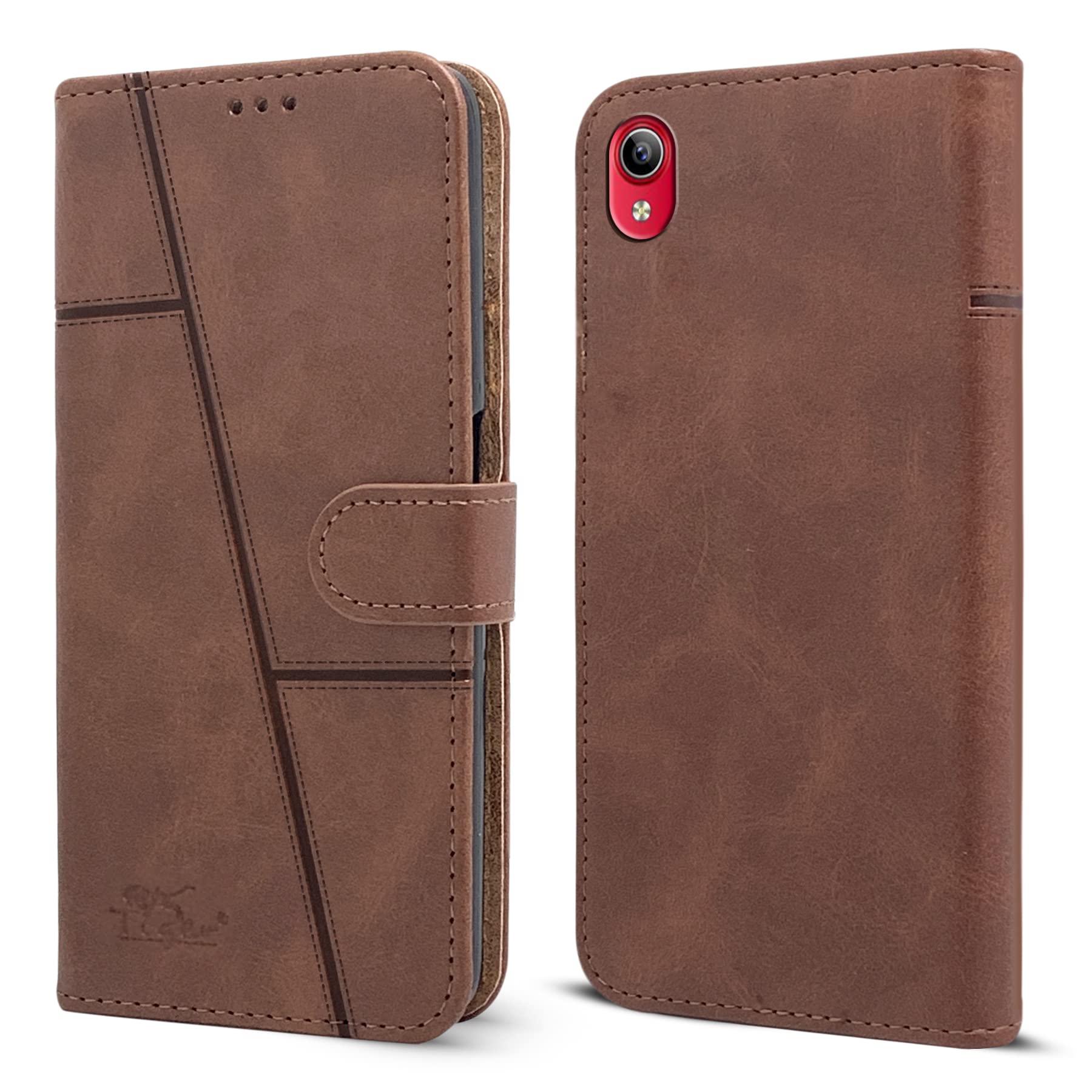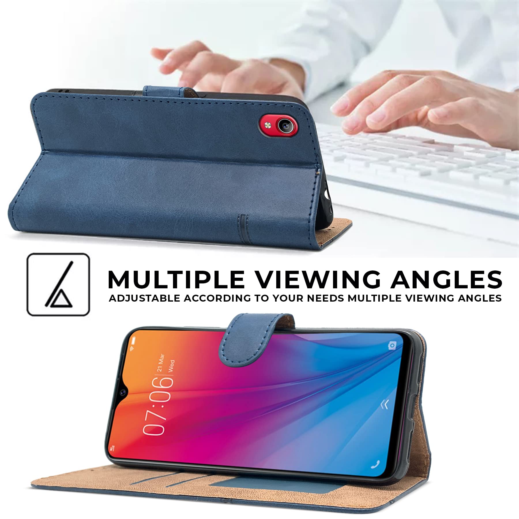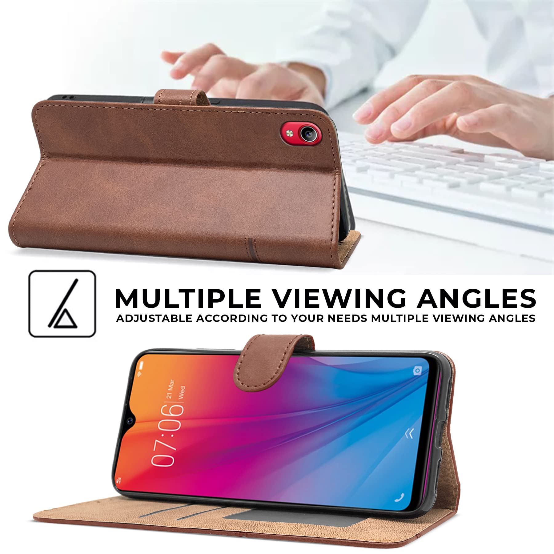 For Vivo Y91i Flip Cover Case (Stitched Leather Finish | Magnetic Closure | Inner TPU | Foldable Stand | Wallet Card Slots)