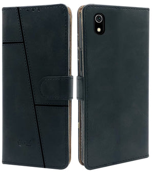 For Xiaomi Mi Redmi 7A Flip Cover Case (Professional Line Pattern| Magnetic Closure | Inner TPU | Inbuilt Stand & Pockets | Office Wallet Style Flip Cover)