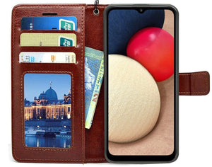 For Samsung Galaxy A02sLeather | Inner TPU | Foldable Stand | Wallet Card Slots Vintage Flip Cover Case