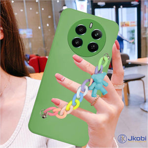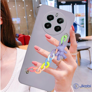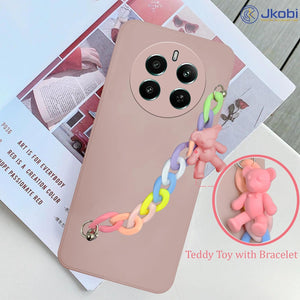 For Realme Narzo 70 5G Back Cover for Girls Case with Bracelet (Wrist Hanging Chain | Teddy Toy Cartoon)