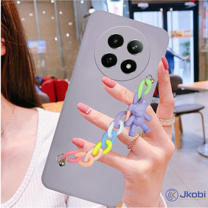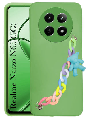 For Realme Narzo N65 5G Back Cover Girls Case with Bracelet (Wrist Hanging Chain | Teddy Toy Cartoon)