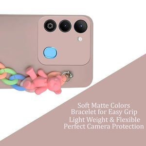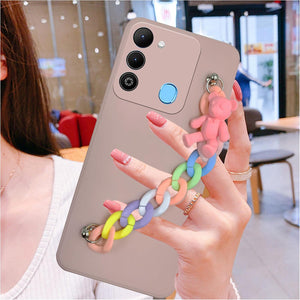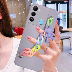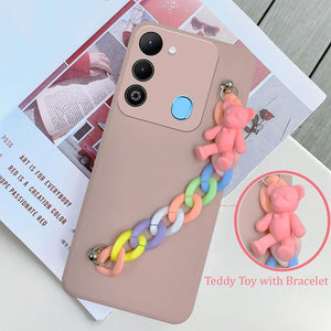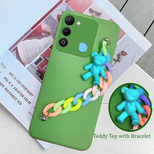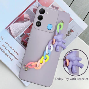 For Tecno Spark Go 2022 Back Cover for Girls Case with Bracelet (Wrist Hanging Chain | Teddy Toy Cartoon)