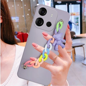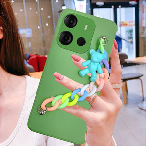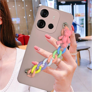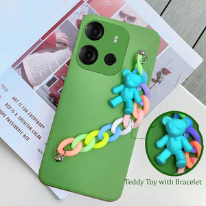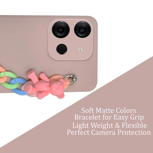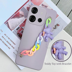For Tecno Spark Go 2023 Back Cover for Girls Case with Bracelet (Wrist Hanging Chain | Teddy Toy Cartoon)