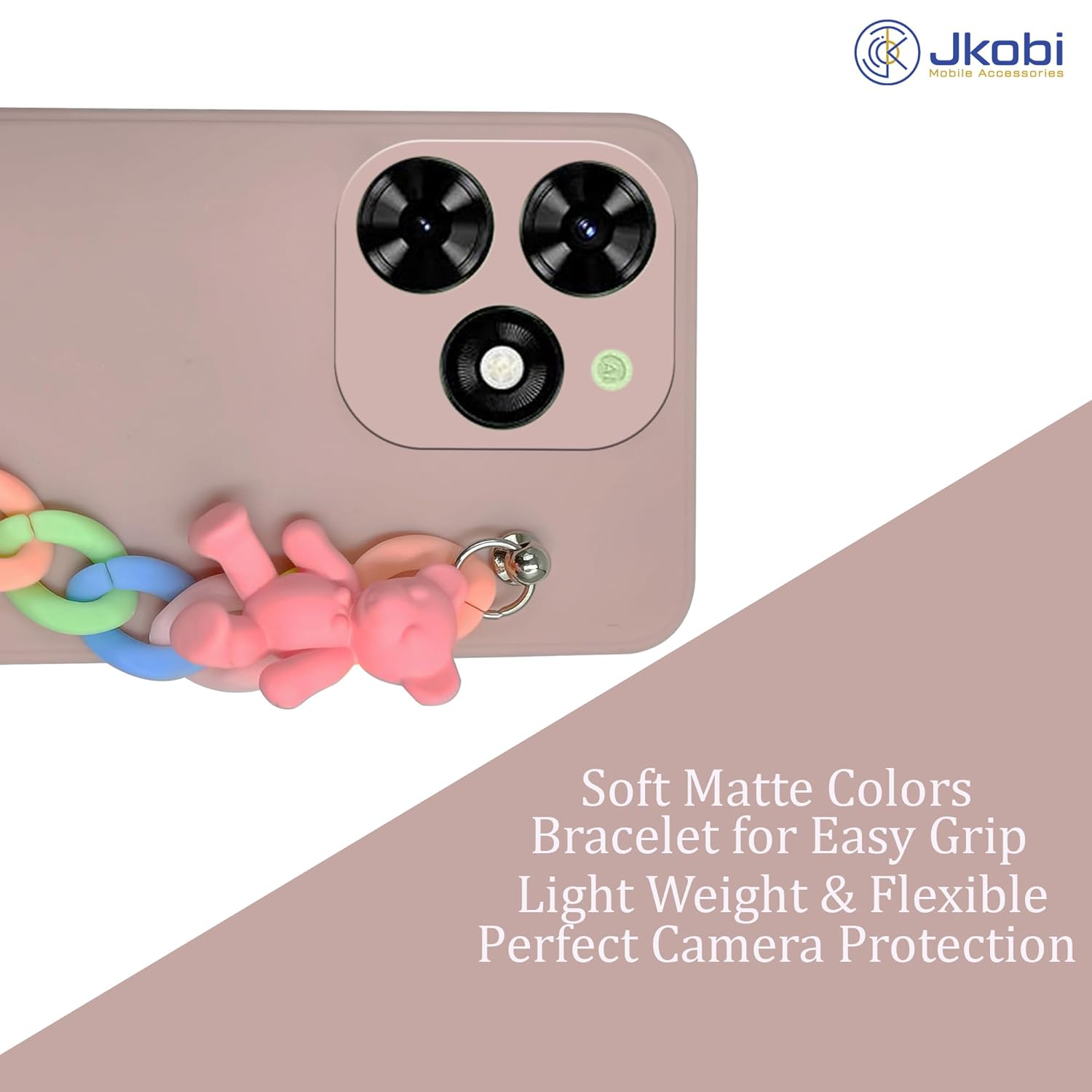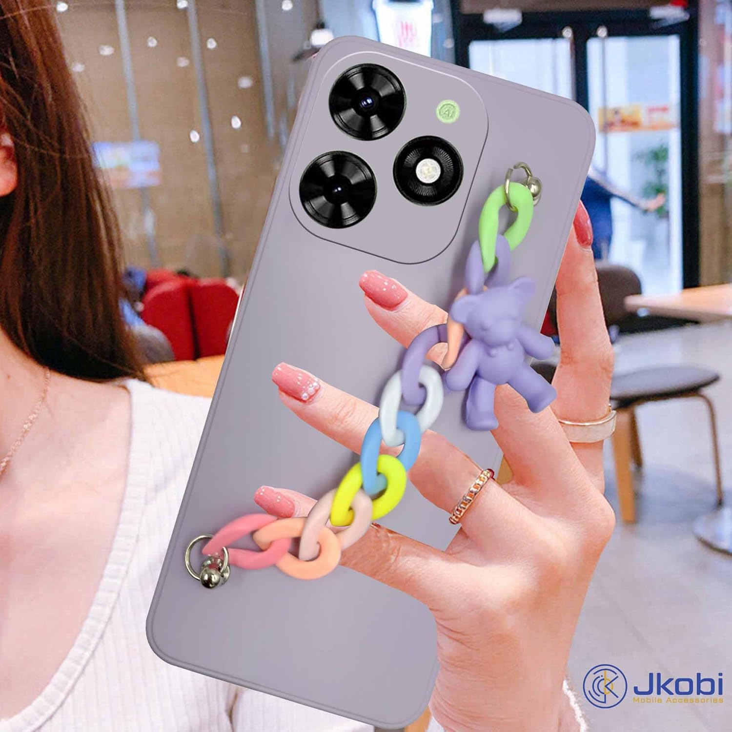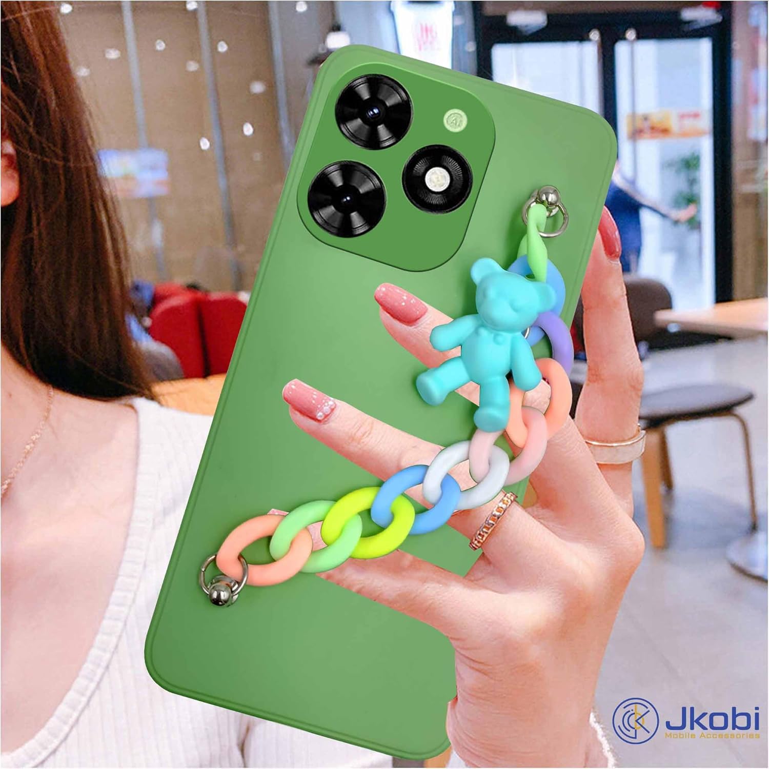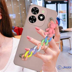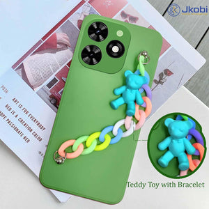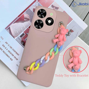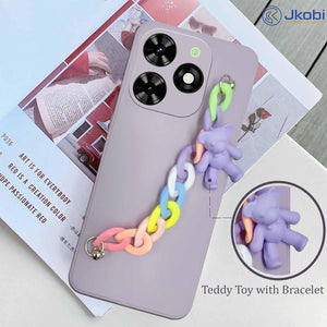 For Tecno Spark Go 2024 Back Cover for Girls Case with Bracelet (Wrist Hanging Chain | Teddy Toy Cartoon)