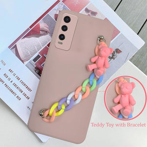 For Vivo Y11s Back Cover Girls Case with Bracelet (Wrist Hanging Chain | Teddy Toy Cartoon)