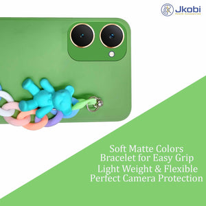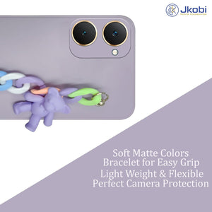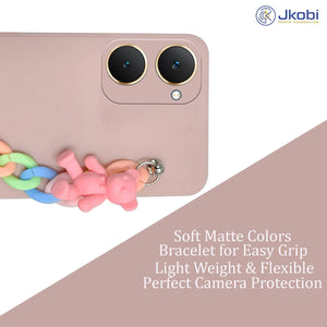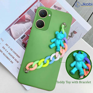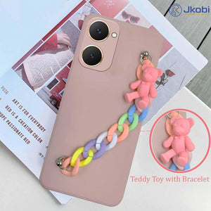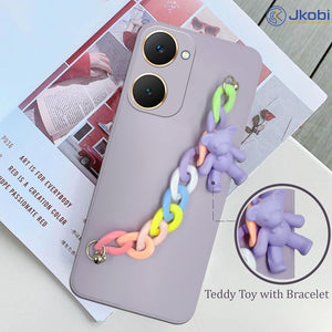 For Vivo Y18 | Y18e | Y03 | Y18i | Y18t Back Cover Girls Case with Bracelet (Wrist Hanging Chain | Teddy Toy Cartoon)