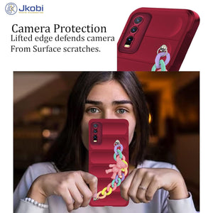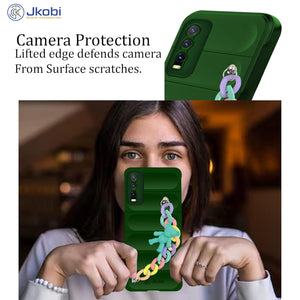 For Vivo Y20 | Y20i Back Cover Girls Case with Bracelet (Wrist Hanging Chain | Micro-Fiber Cloth Inside)