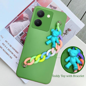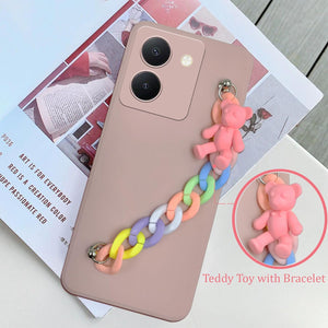 For Vivo Y36 Back Cover Girls Case with Bracelet (Wrist Hanging Chain | Teddy Toy Cartoon)