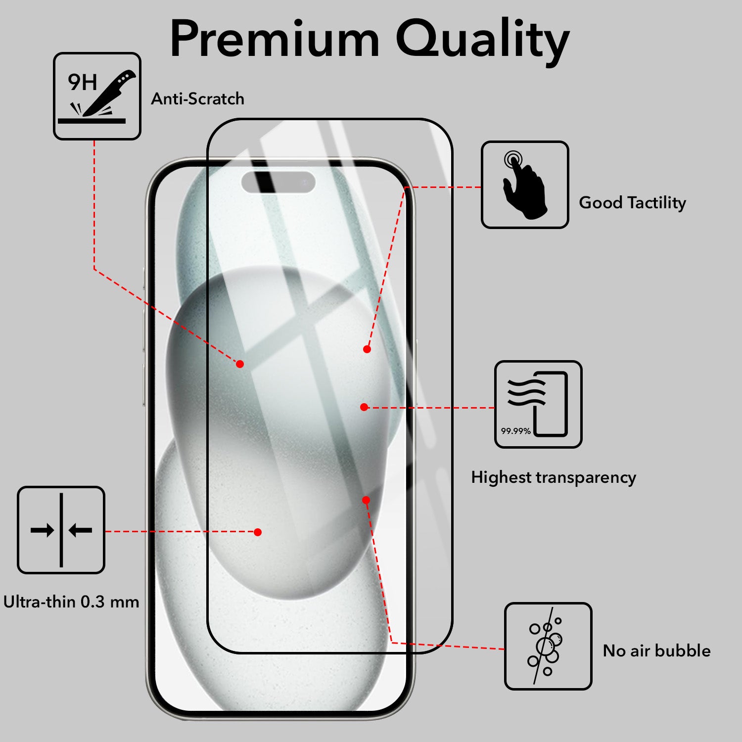 (Pack of 2) Tempered Glass For Apple iPhone 15 Plus Military-Grade Gorilla Screen Protector With Installation Kit | Shatterproof, Full Coverage, HD Clear, Scratch Resistant