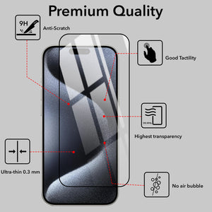 (Pack of 2) Tempered Glass For Apple iPhone 15 Pro Max Military-Grade Gorilla Screen Protector With Installation Kit | Shatterproof, Full Coverage, HD Clear, Scratch Resistant