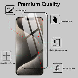 (Pack of 2) Tempered Glass For Apple iPhone 15 Pro Military-Grade Gorilla Screen Protector With Installation Kit | Shatterproof, Full Coverage, HD Clear, Scratch Resistant