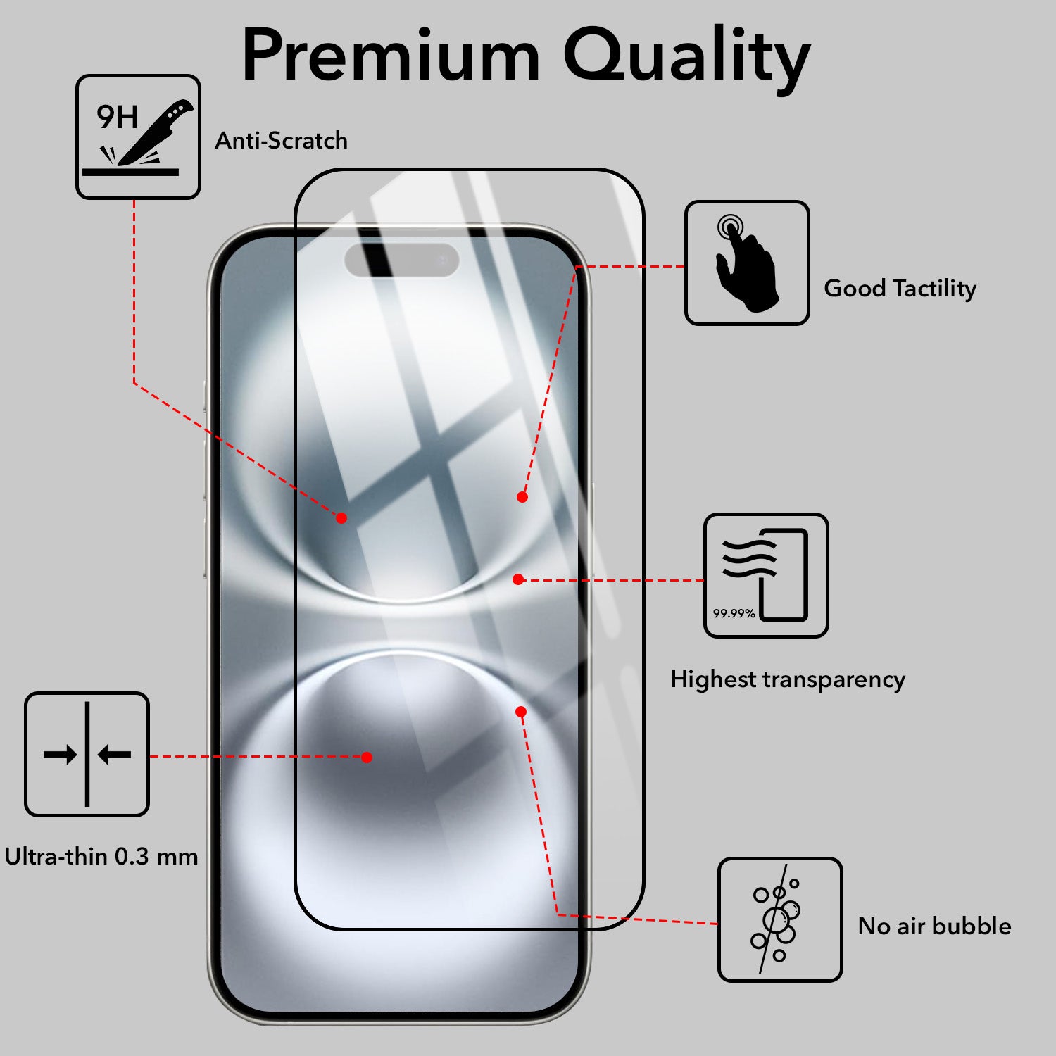 (Pack of 2) Tempered Glass For Apple iPhone 16 Military-Grade Gorilla Screen Protector With Installation Kit | Shatterproof, Full Coverage, HD Clear, Scratch Resistant
