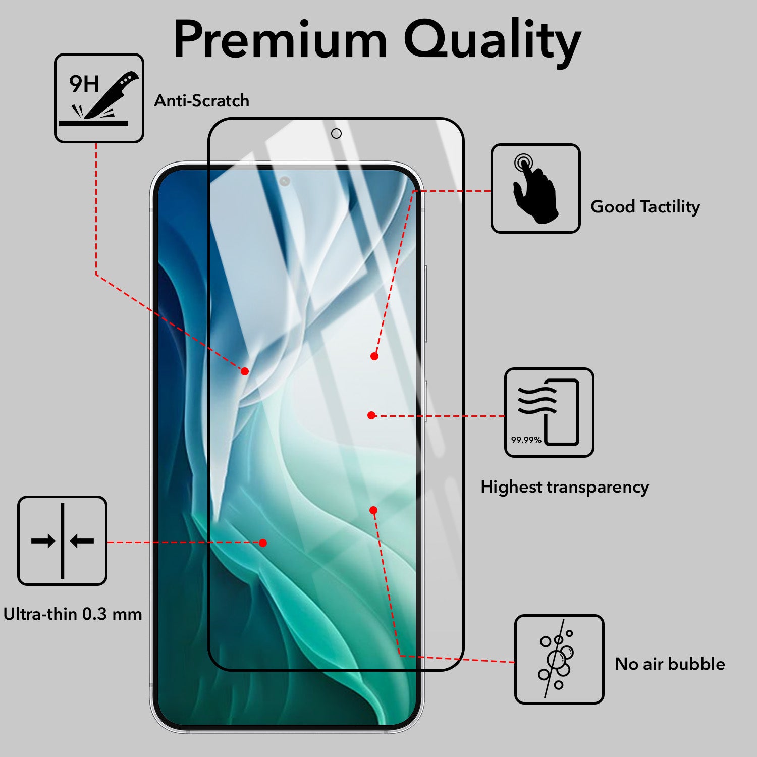 - Air-Bubble Proof, Anti Fingerprint, Anti Glare, Uv Protection, Mobile