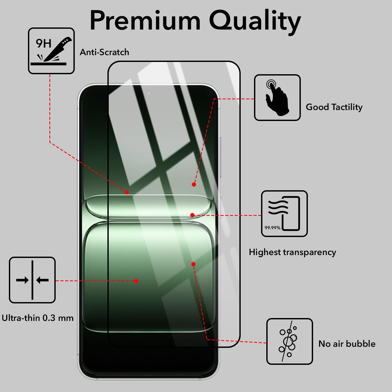- Air-Bubble Proof, Anti Fingerprint, Anti Glare, Uv Protection, Mobile