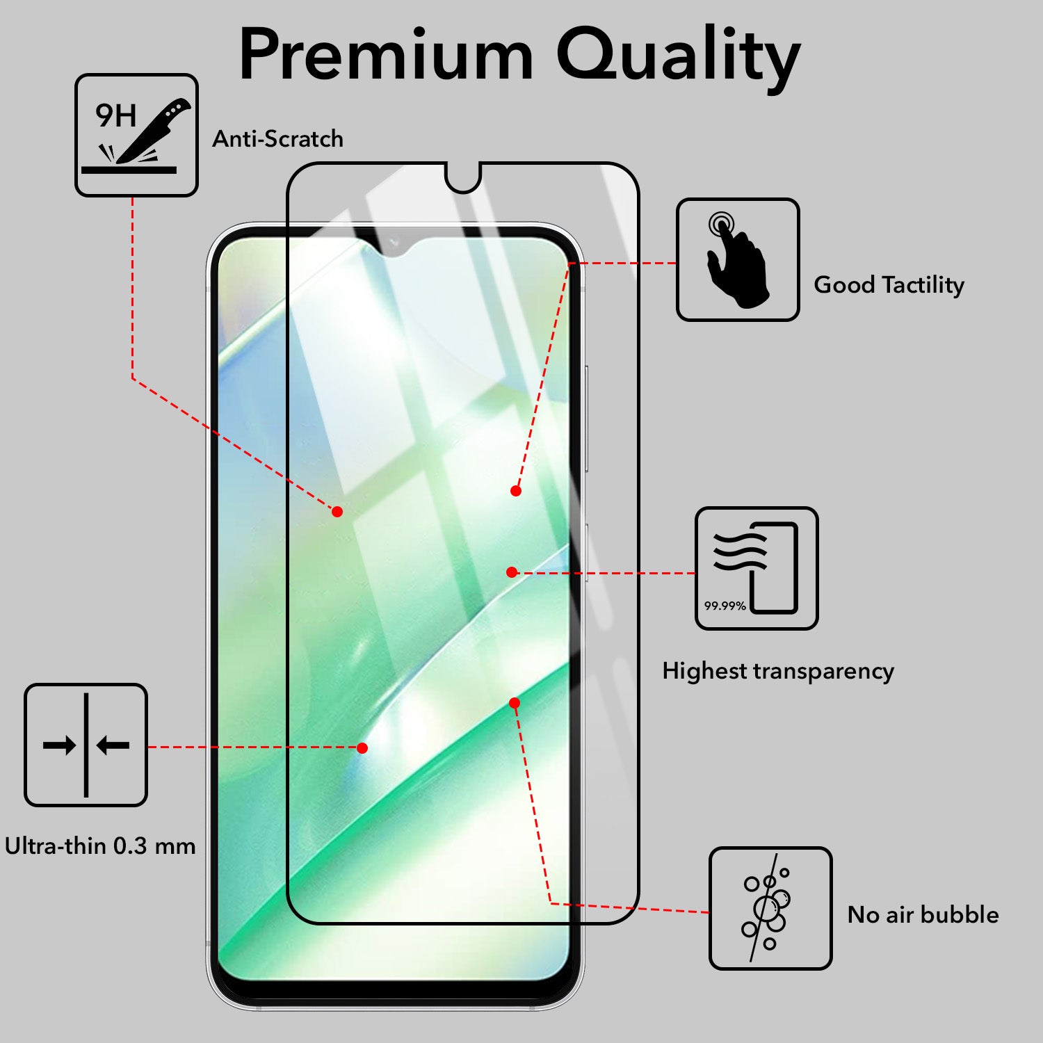 - Air-Bubble Proof, Anti Fingerprint, Anti Glare, Uv Protection, Mobile