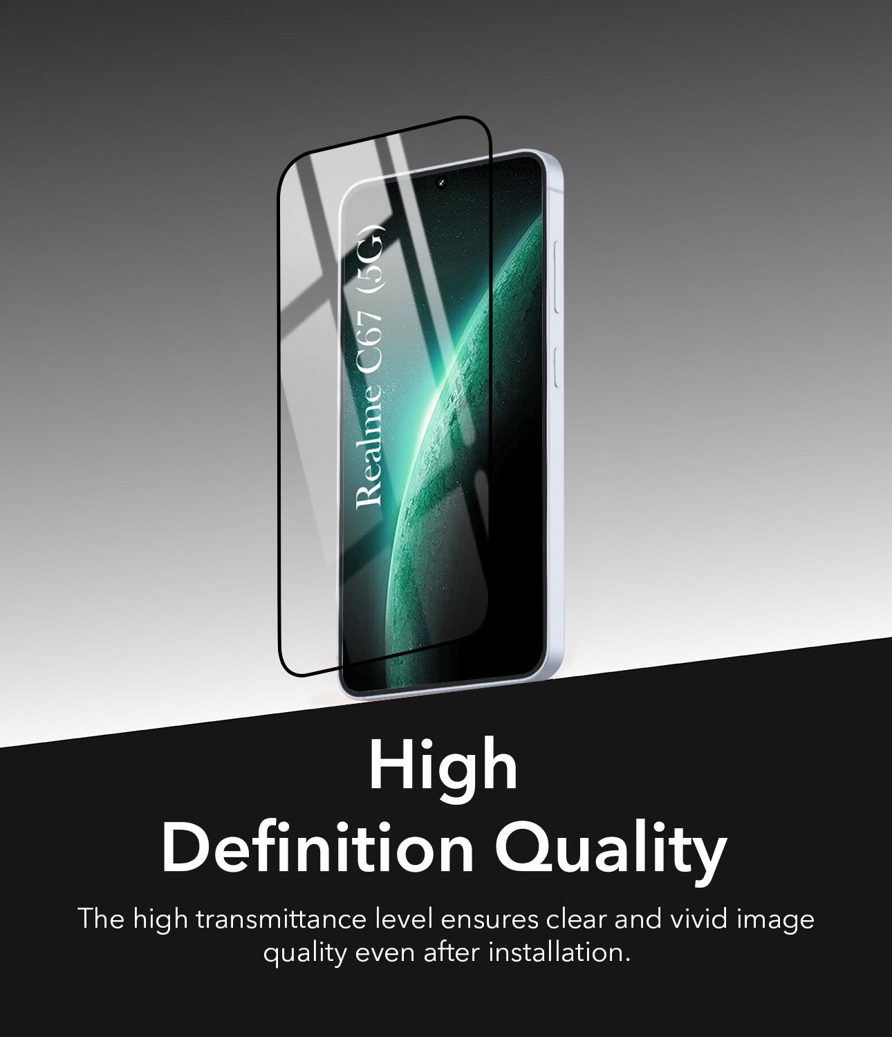 (Pack of 2) Tempered Glass For Realme C67 Military-Grade Gorilla Screen Protector With Installation Kit | Shatterproof, Full Coverage, HD Clear, Scratch Resistant