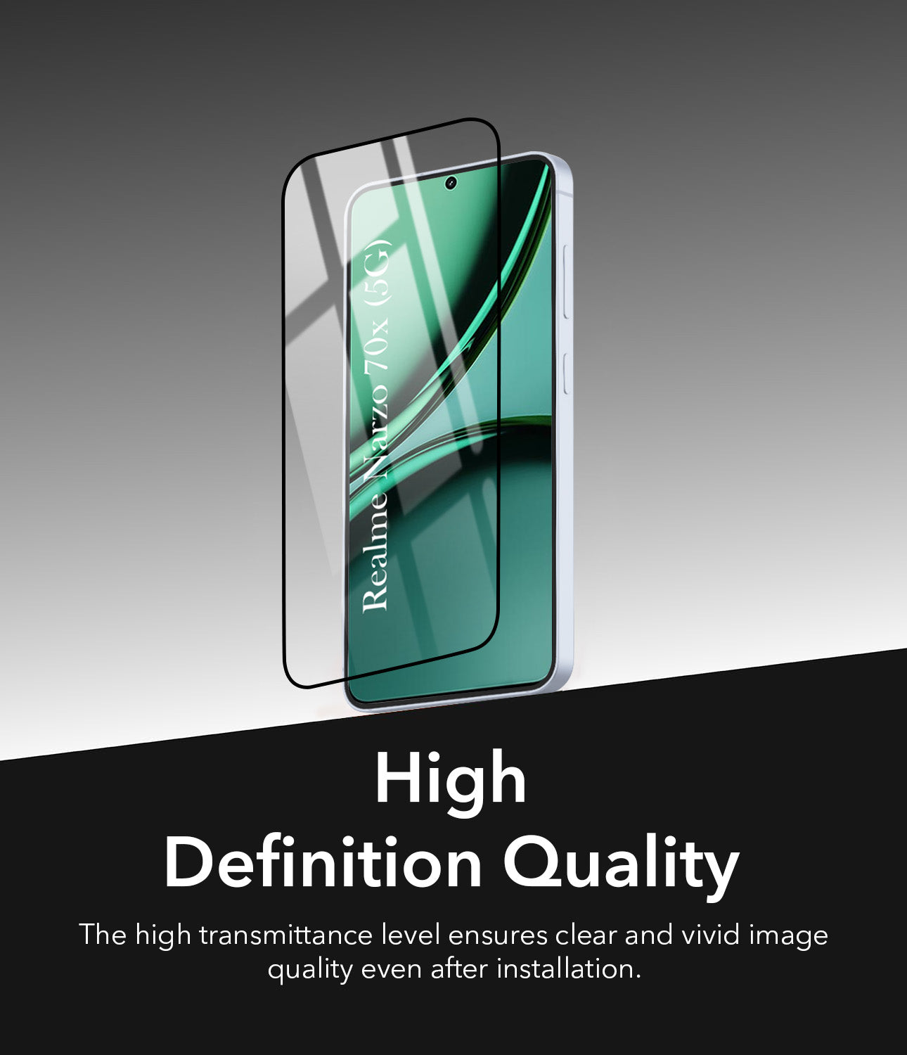 (Pack of 2) Tempered Glass For Realme Narzo 70x 5G Military-Grade Gorilla Screen Protector With Installation Kit | Shatterproof, Full Coverage, HD Clear, Scratch Resistant