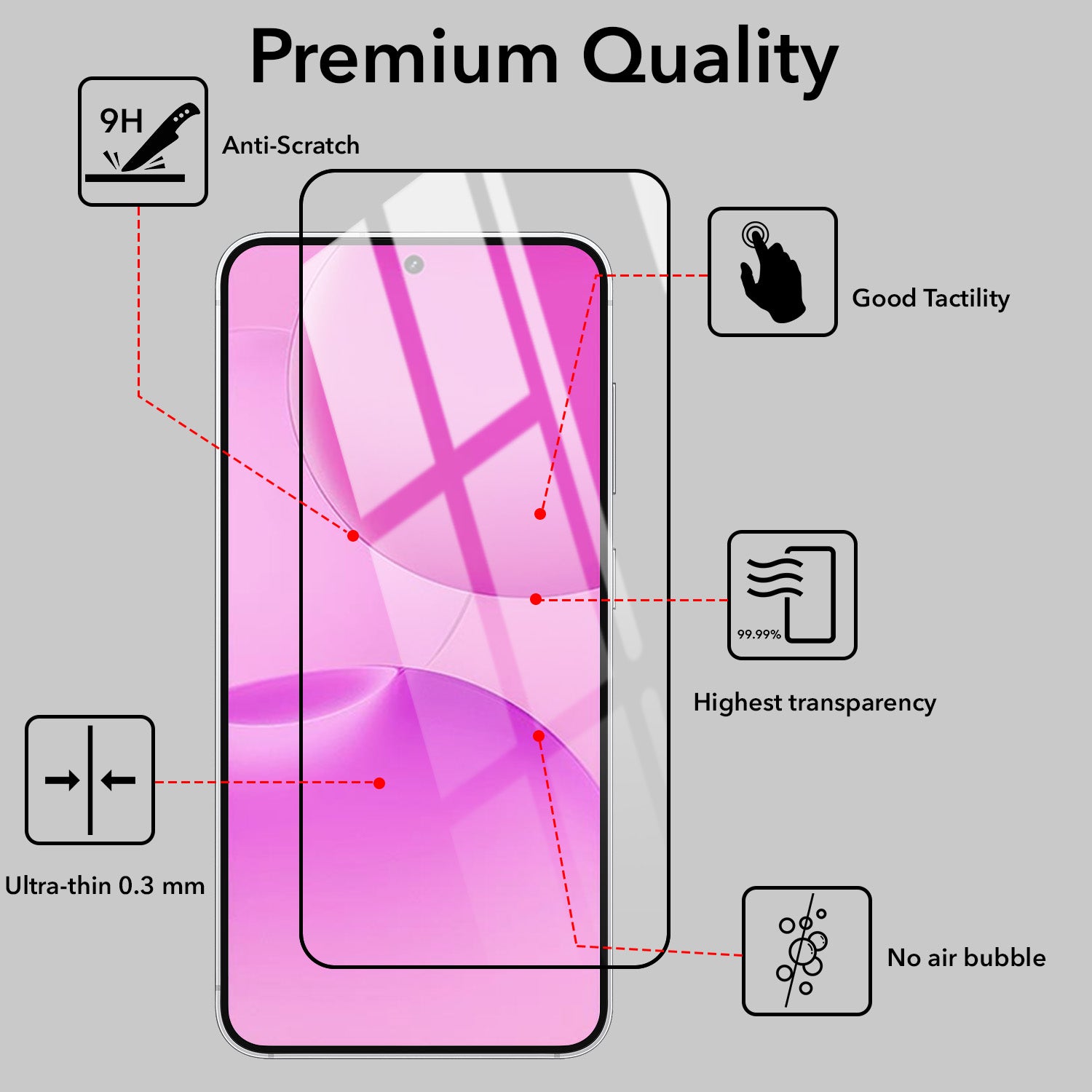 Other Features: Smooth Touch, HD Clarity, High Transparency, Round Edges.