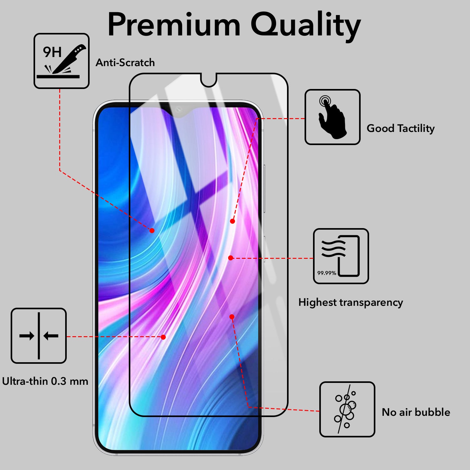 - Air-Bubble Proof, Anti Fingerprint, Anti Glare, Uv Protection, Mobile