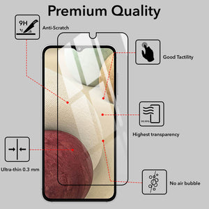 (Pack of 2) Tempered Glass For Samsung Galaxy A12 Military-Grade Gorilla Screen Protector With Installation Kit | Shatterproof, Full Coverage, HD Clear, Scratch Resistant