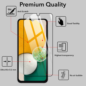 (Pack of 2) Tempered Glass For Samsung Galaxy A14 4G | 5G Military-Grade Gorilla Screen Protector With Installation Kit | Shatterproof, Full Coverage, HD Clear, Scratch Resistant