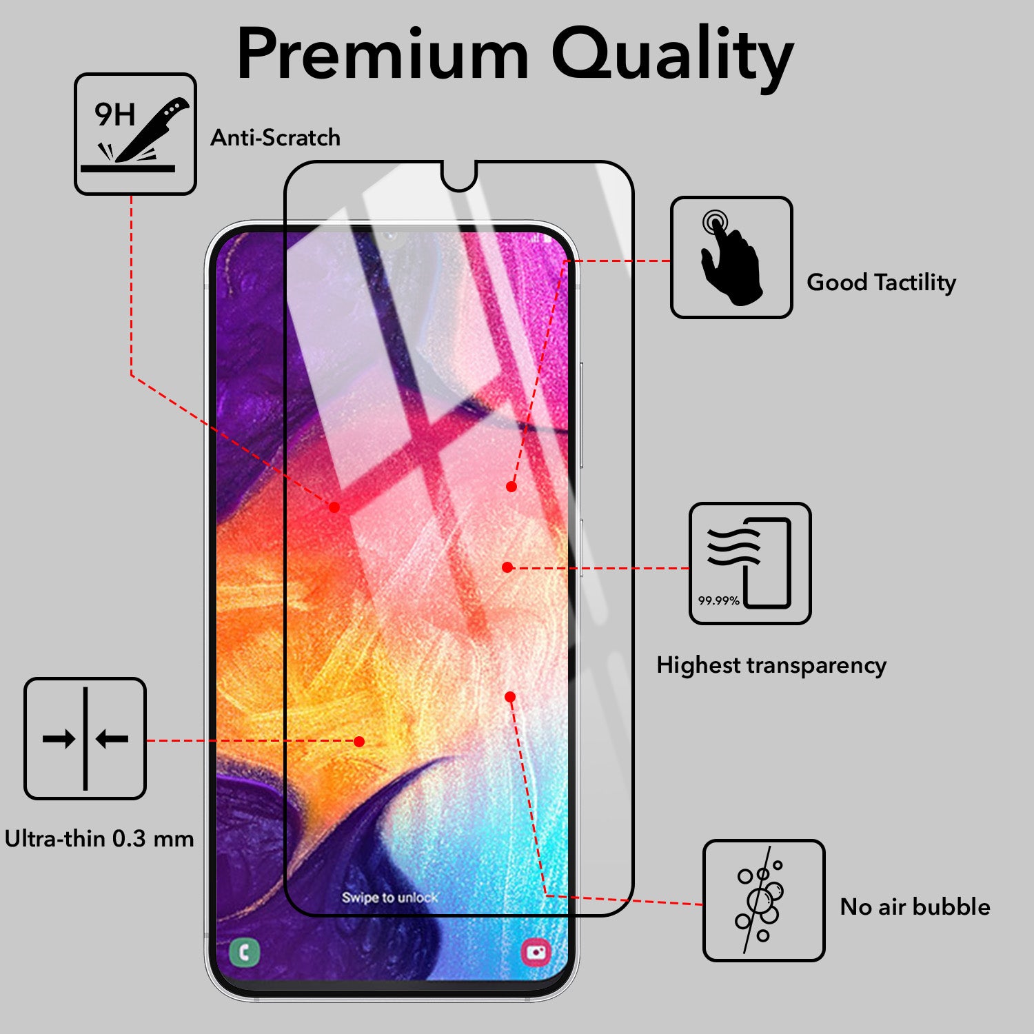 (Pack of 2) Tempered Glass For Samsung Galaxy A50 | Galaxy A50s Military-Grade Gorilla Tempered Glass Screen Protector With Installation Kit | Shatterproof, Full Coverage, HD Clear, Scratch Resistant