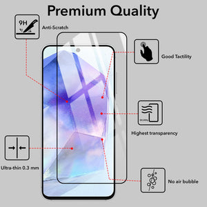 (Pack of 2) Tempered Glass For Samsung Galaxy A55 5G Military-Grade Gorilla Screen Protector With Installation Kit | Shatterproof, Full Coverage, HD Clear, Scratch Resistant