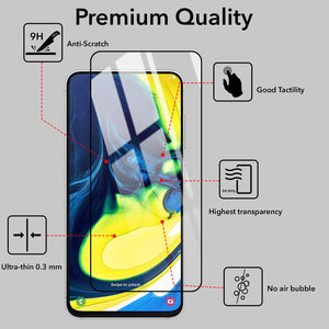 (Pack of 2) Tempered Glass For Samsung Galaxy A80 Military-Grade Gorilla Screen Protector With Installation Kit | Shatterproof, Full Coverage, HD Clear, Scratch Resistant