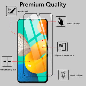 (Pack of 2) Tempered Glass For Samsung Galaxy F22 Military-Grade Gorilla Screen Protector With Installation Kit | Shatterproof, Full Coverage, HD Clear, Scratch Resistant