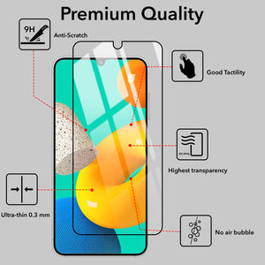 (Pack of 2) Tempered Glass For Samsung Galaxy M32 5G Military-Grade Gorilla Screen Protector With Installation Kit | Shatterproof, Full Coverage, HD Clear, Scratch Resistant