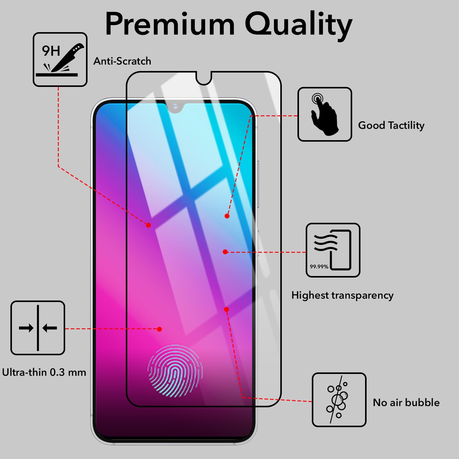 - Air-Bubble Proof, Anti Fingerprint, Anti Glare, Uv Protection, Mobile